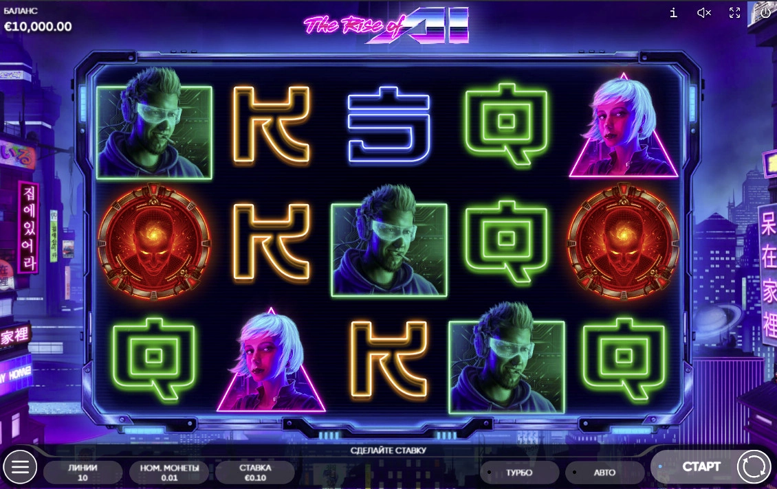 Сможете ли вы спасти мир от катастрофы и остановить The Rise of AI? Отправляйтесь в антиутопическое и неопределенное будущее на слоте от Endorphina и войдите в опасный кибер-мир, чтобы противостоять своей катушке с механикой оплаты, где угодно, случайным множителем выигрыша до x50 и функцией риск игрой, которая может привести к выигрышам до 5000 раз больше вашей ставки на один выигрыш.